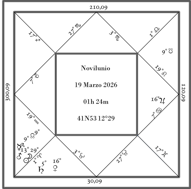 Marte-Saturno. Il Novilunio si perfeziona nel nono luogo al ventottesimo